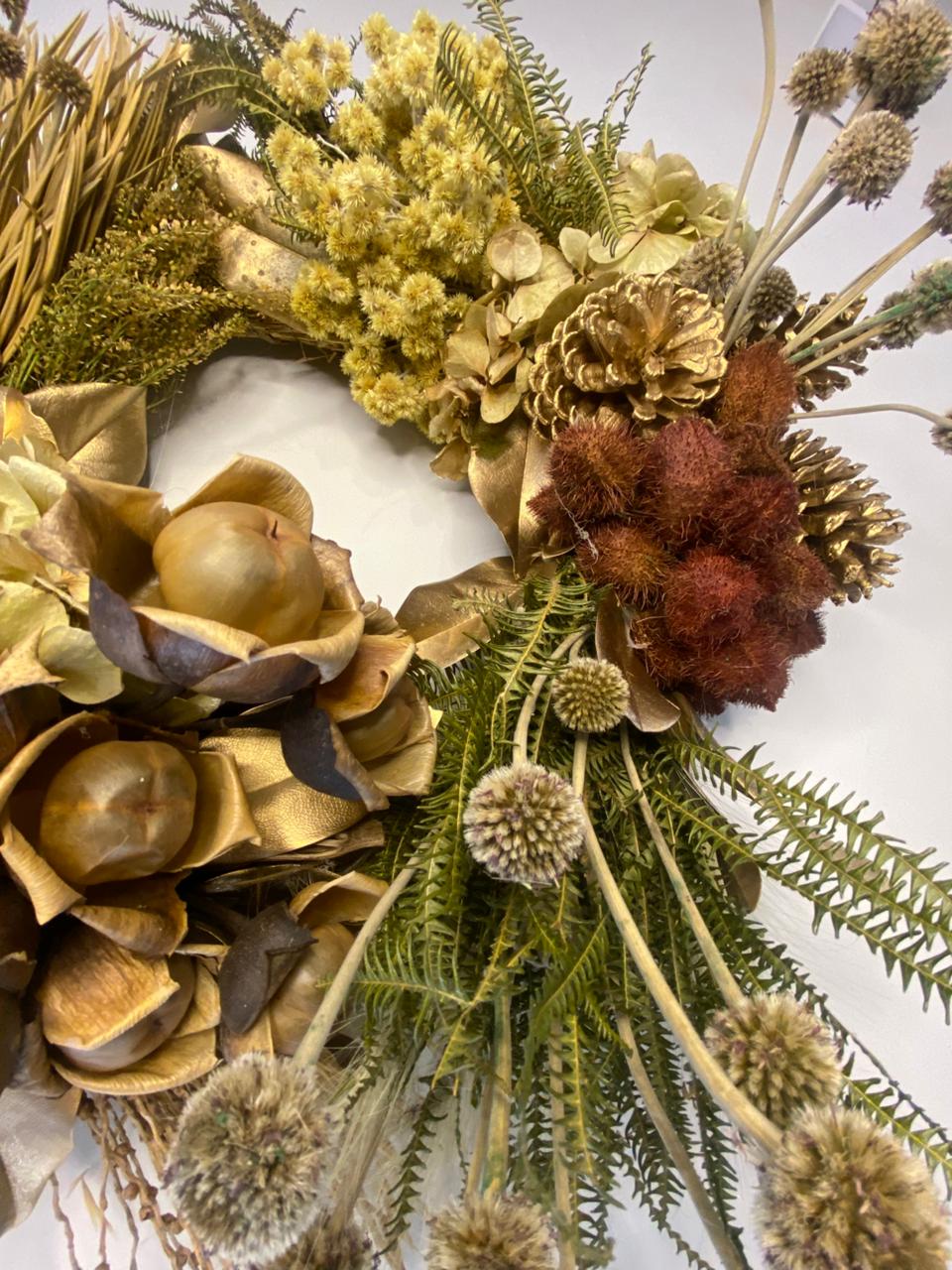 Guirlanda natalina com aproximadamente 60cm de diâmetro.As guirlandas são únicas e exclusivas.